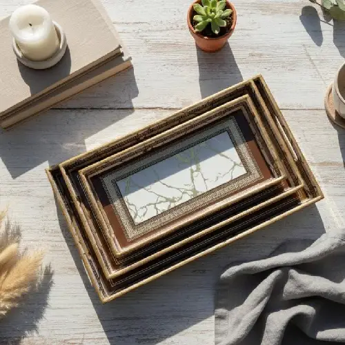 Serving beverages and snacks, organizing vanity or dresser items, or as a decorative coffee table centerpiece.
