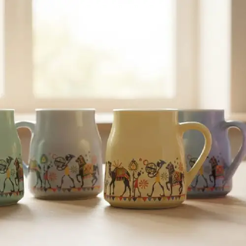 Multicolour pastel shades – Mint Green, Pink, Lavender/Grey, and Beige (with traditional elephant & camel motif print)