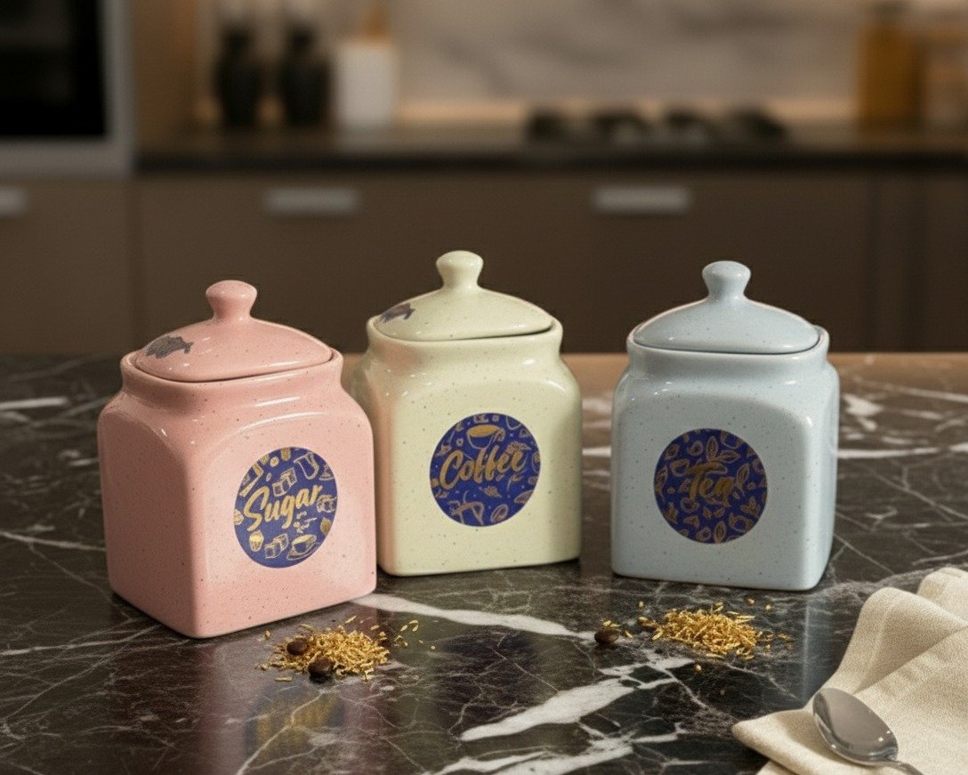 Elevate your kitchen aesthetics with this charming 3-piece Ceramic Canister Set. Each jar features a unique pastel hue with a sophisticated “flecked” or speckled pattern, giving it a handcrafted, artisanal feel.