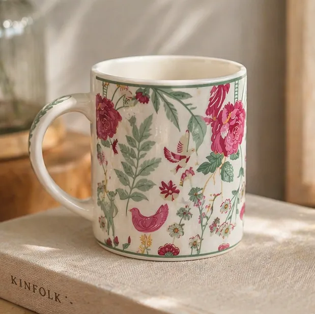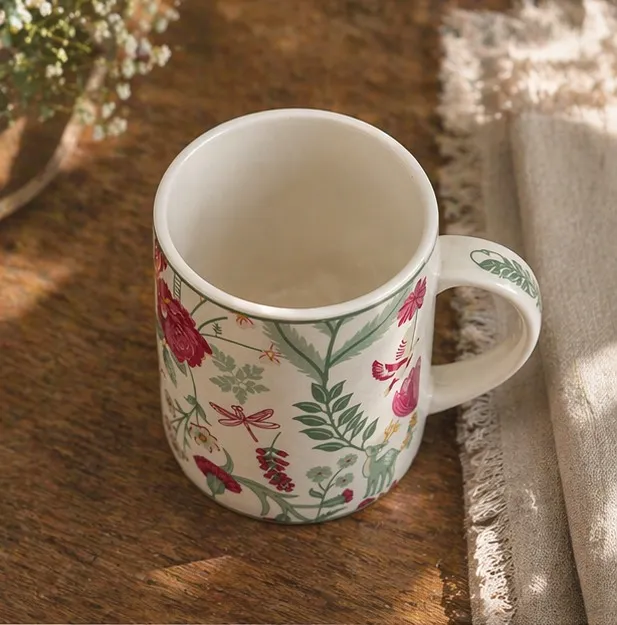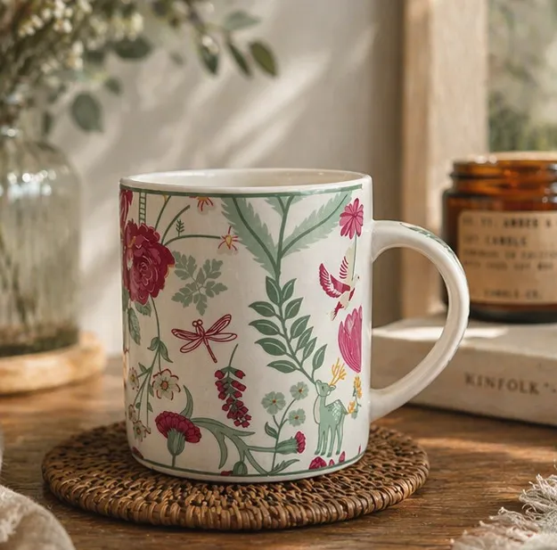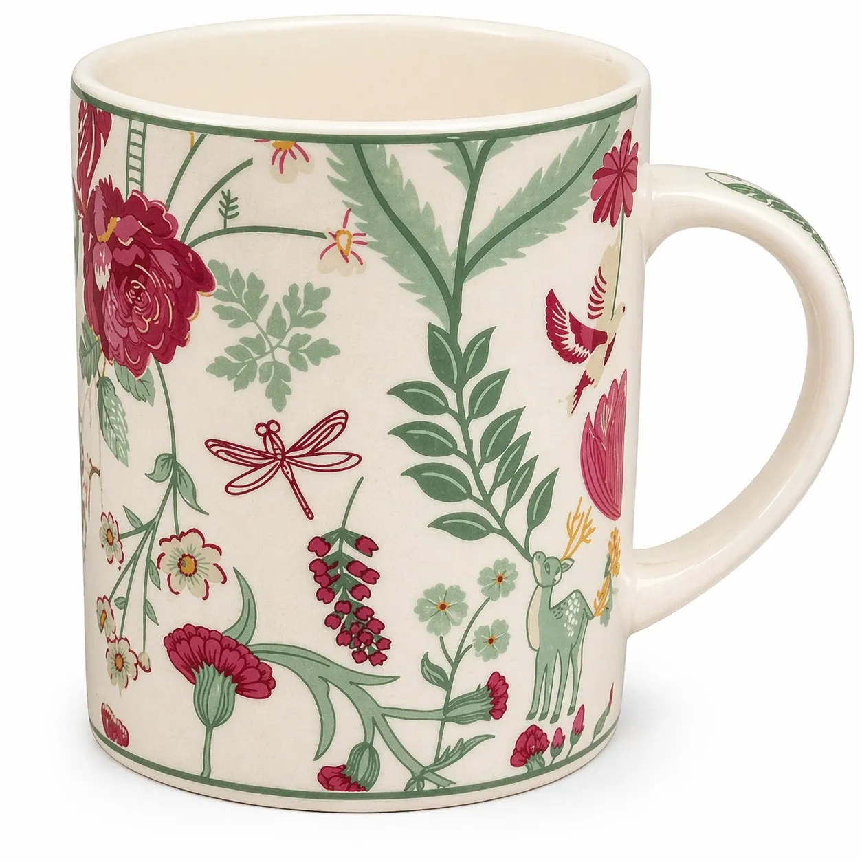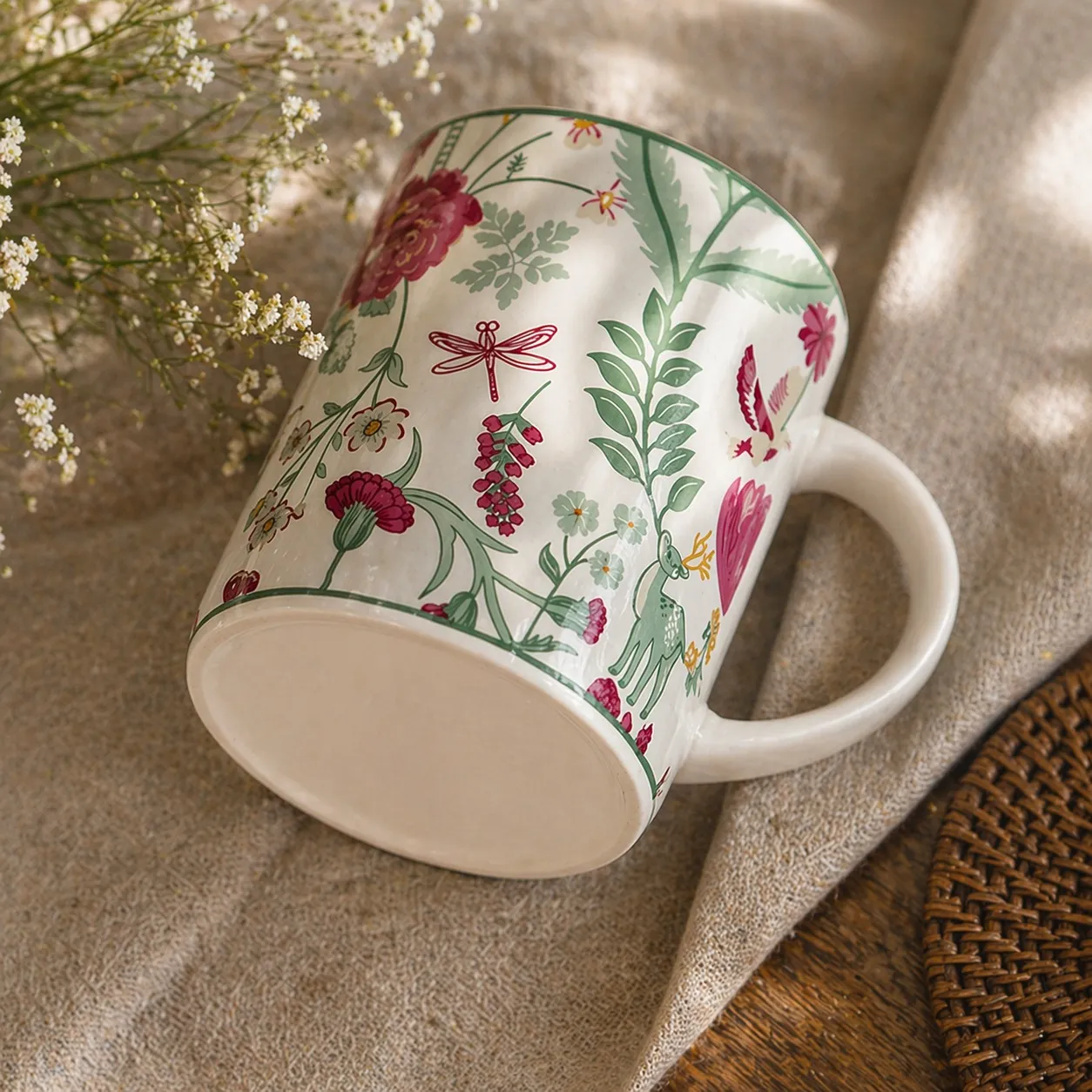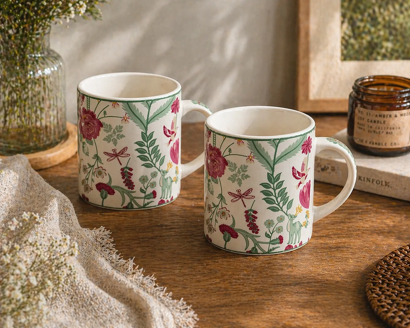 A thoughtfully designed ceramic mug featuring a delicate botanical pattern that brings a soft, nature-inspired aesthetic to everyday moments. The fine detailing of florals and foliage adds visual interest while maintaining a clean and premium look. Crafted for daily use, it offers a comfortable grip, durable build, and a smooth glazed surface that is easy to maintain. Ideal for both personal use and gifting, this mug blends functionality with understated elegance, making it a versatile addition to modern homes and workspaces.